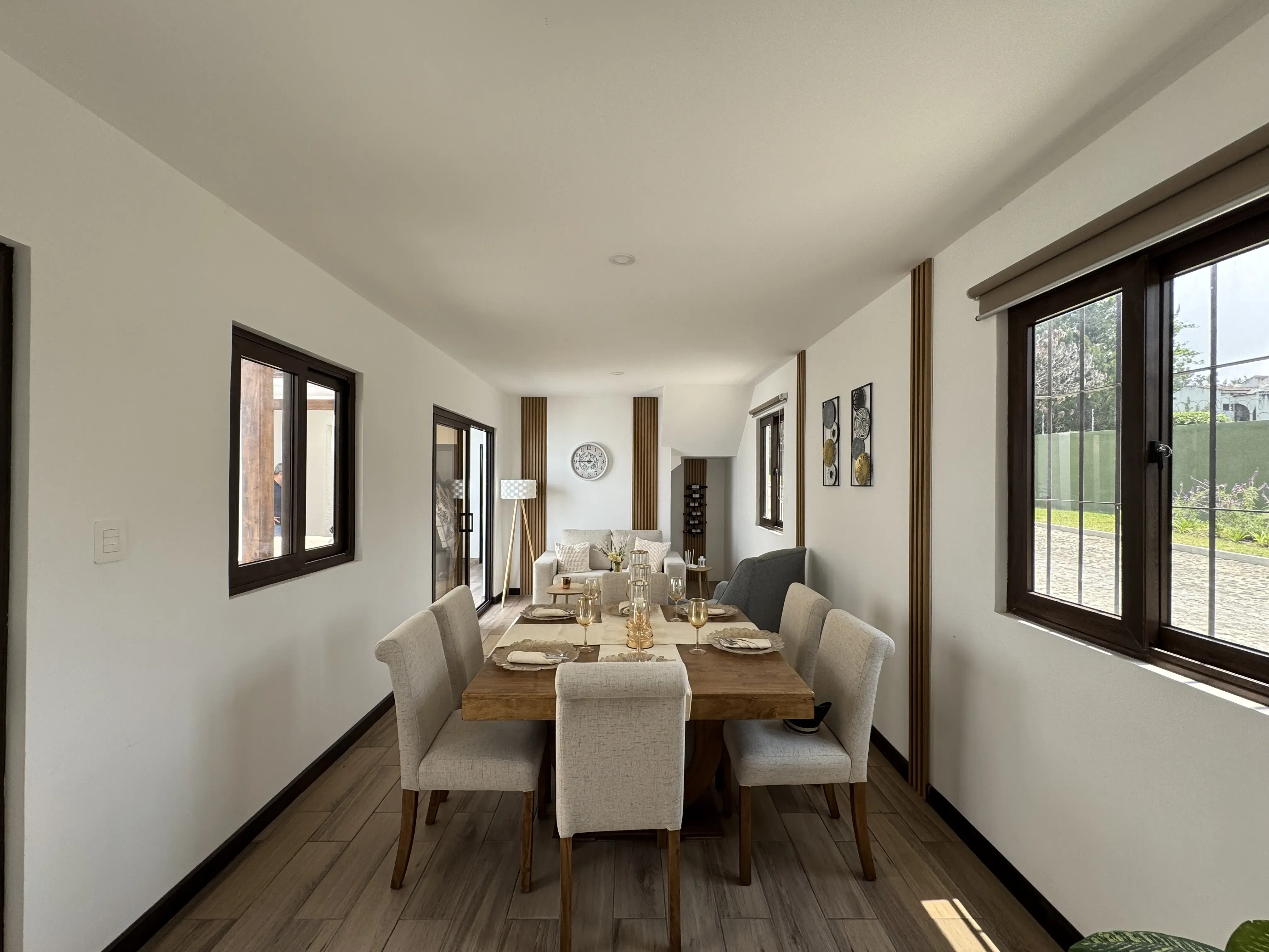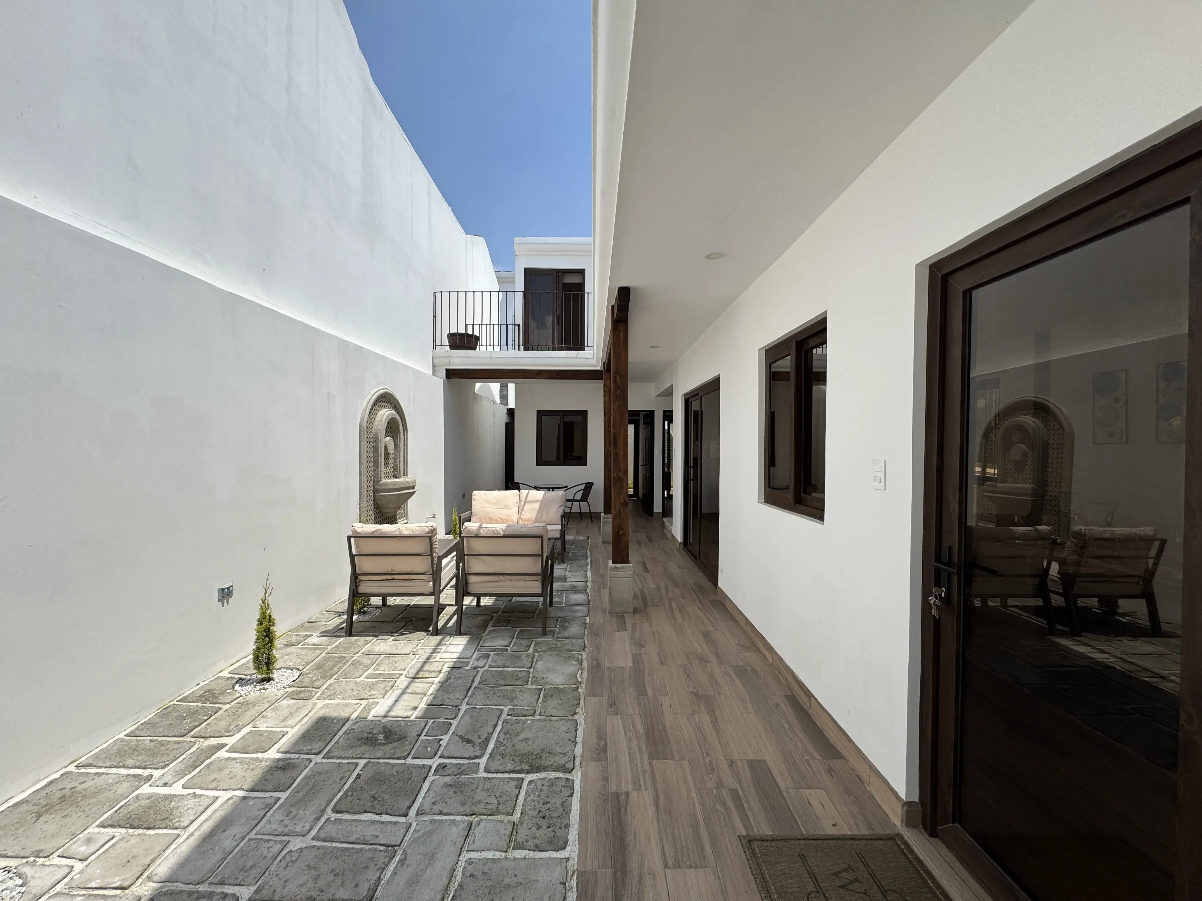 - Portón Principal: Madera, lo cual brinda un toque tradicional y rústico en la entrada