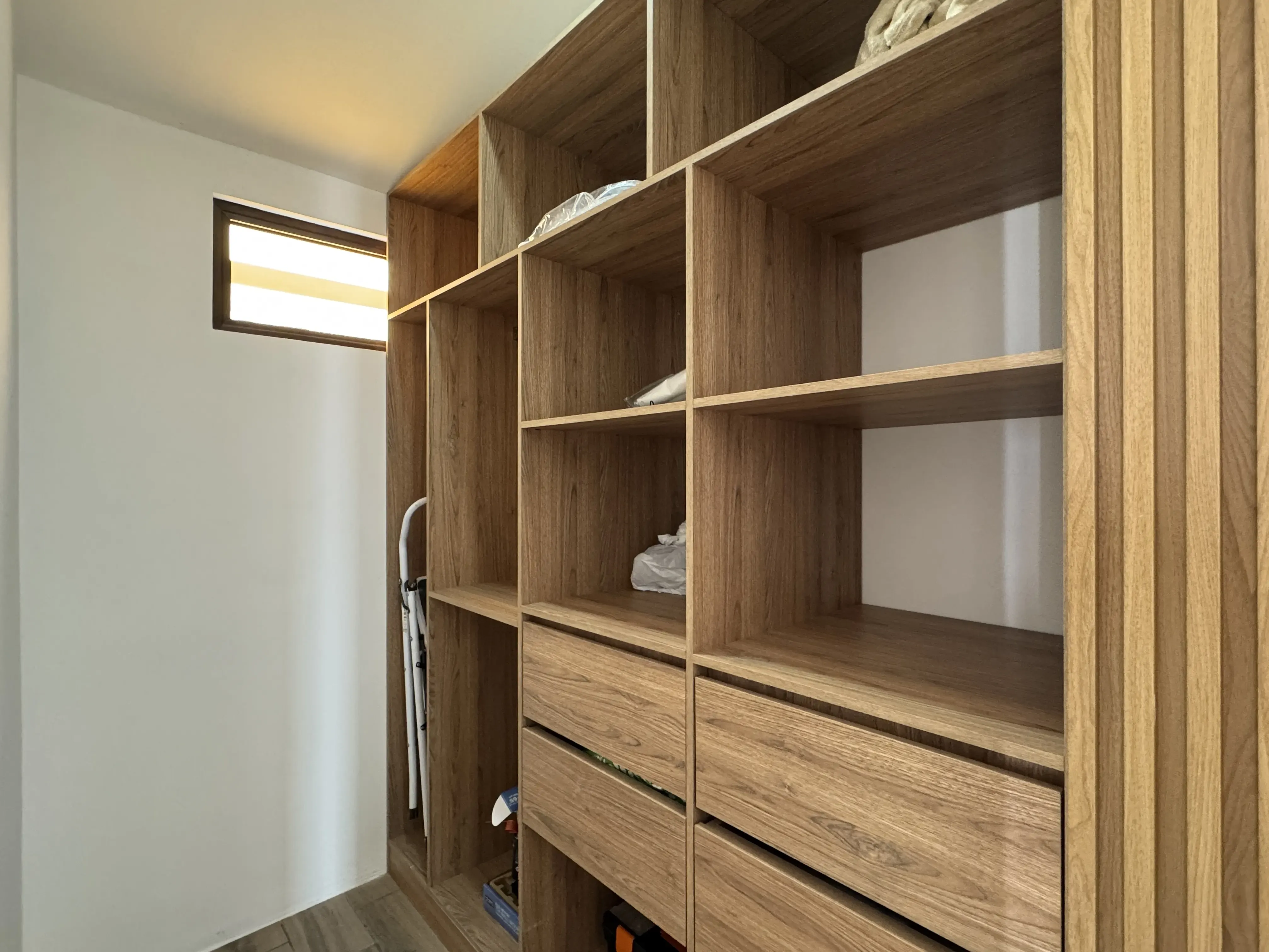 - Closets de melamina, proporcionando un espacio práctico para almacenamiento