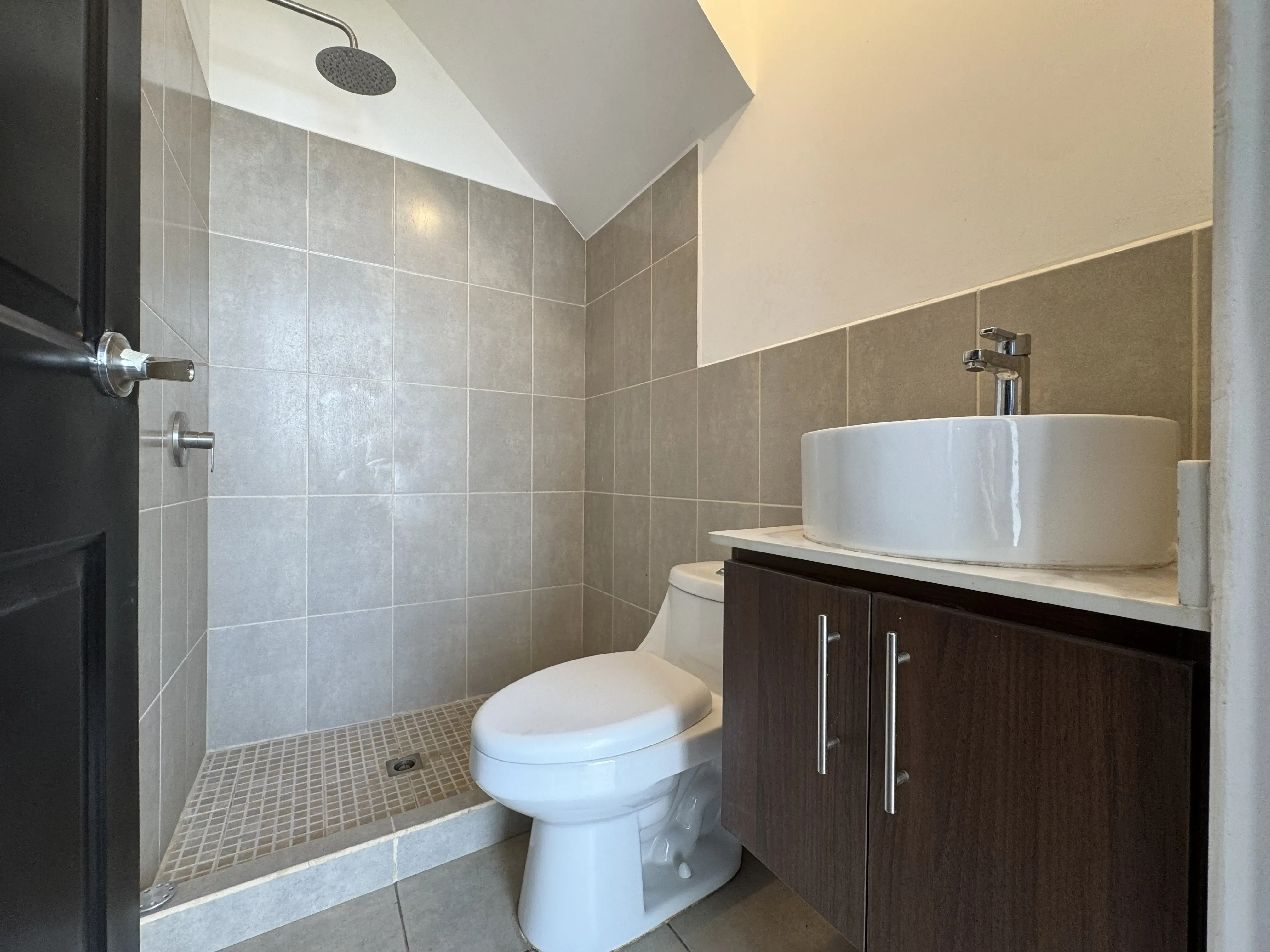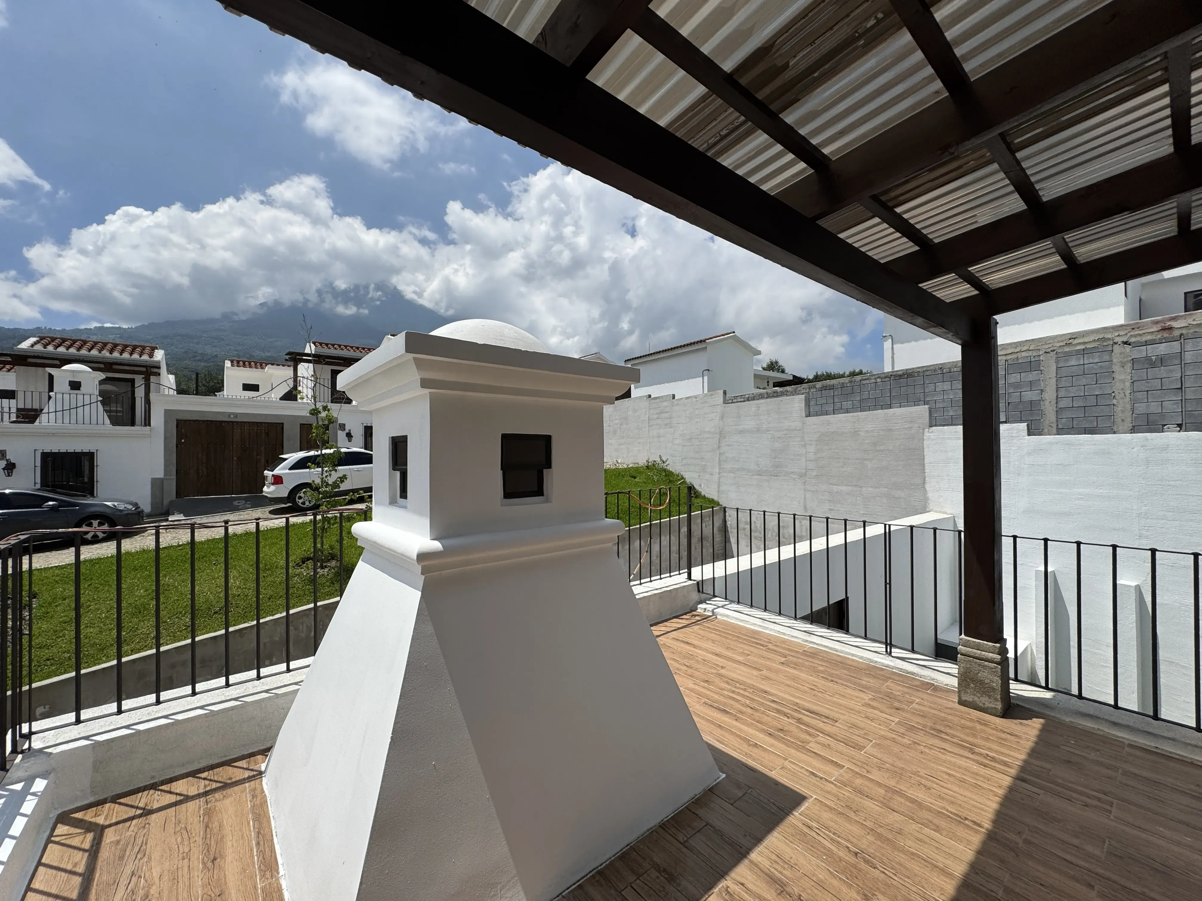 • Dormitorio con baño y acceso a pérgola con linda vista hacia el volcán de agua y acceso hacia la terraza