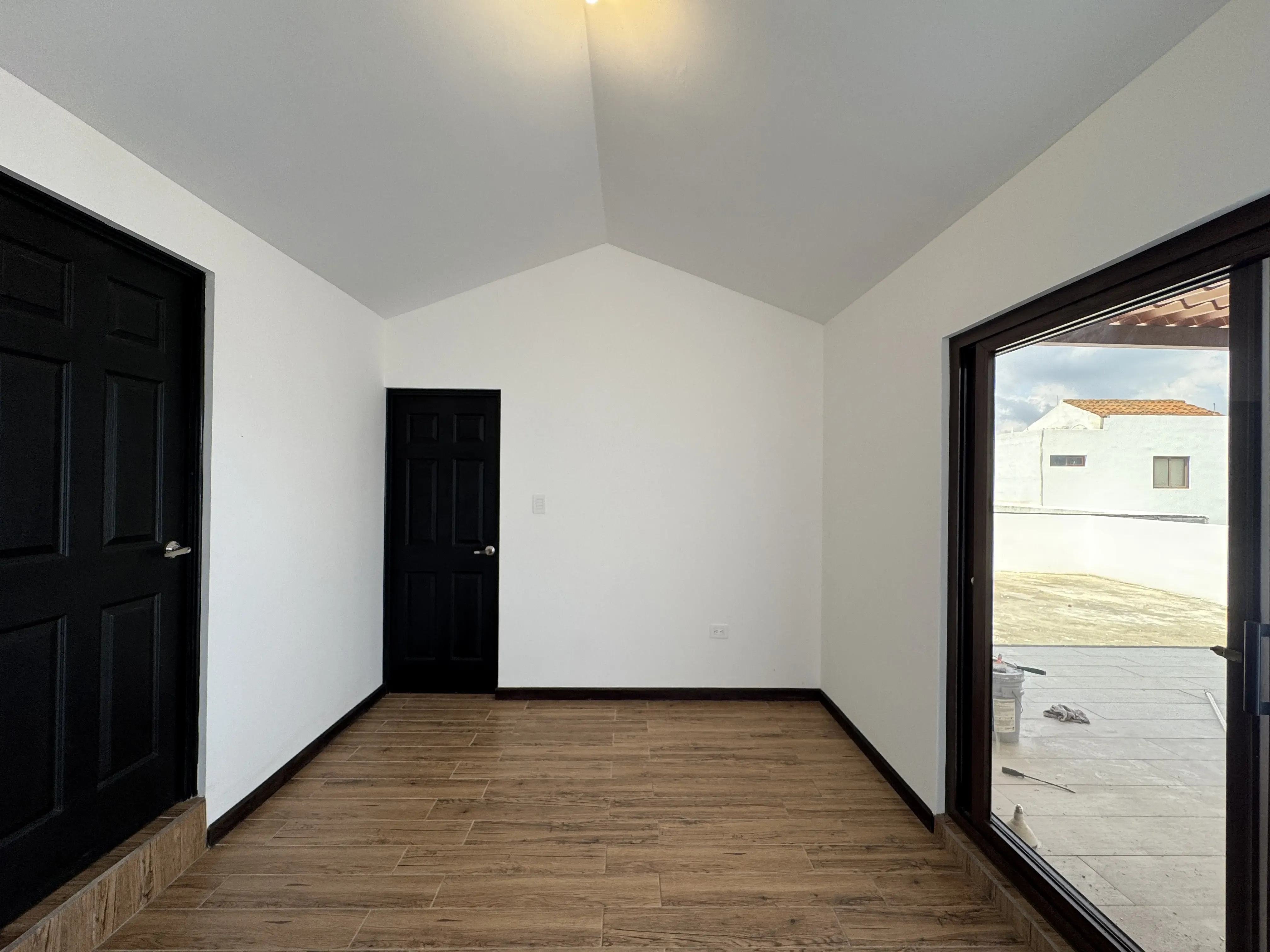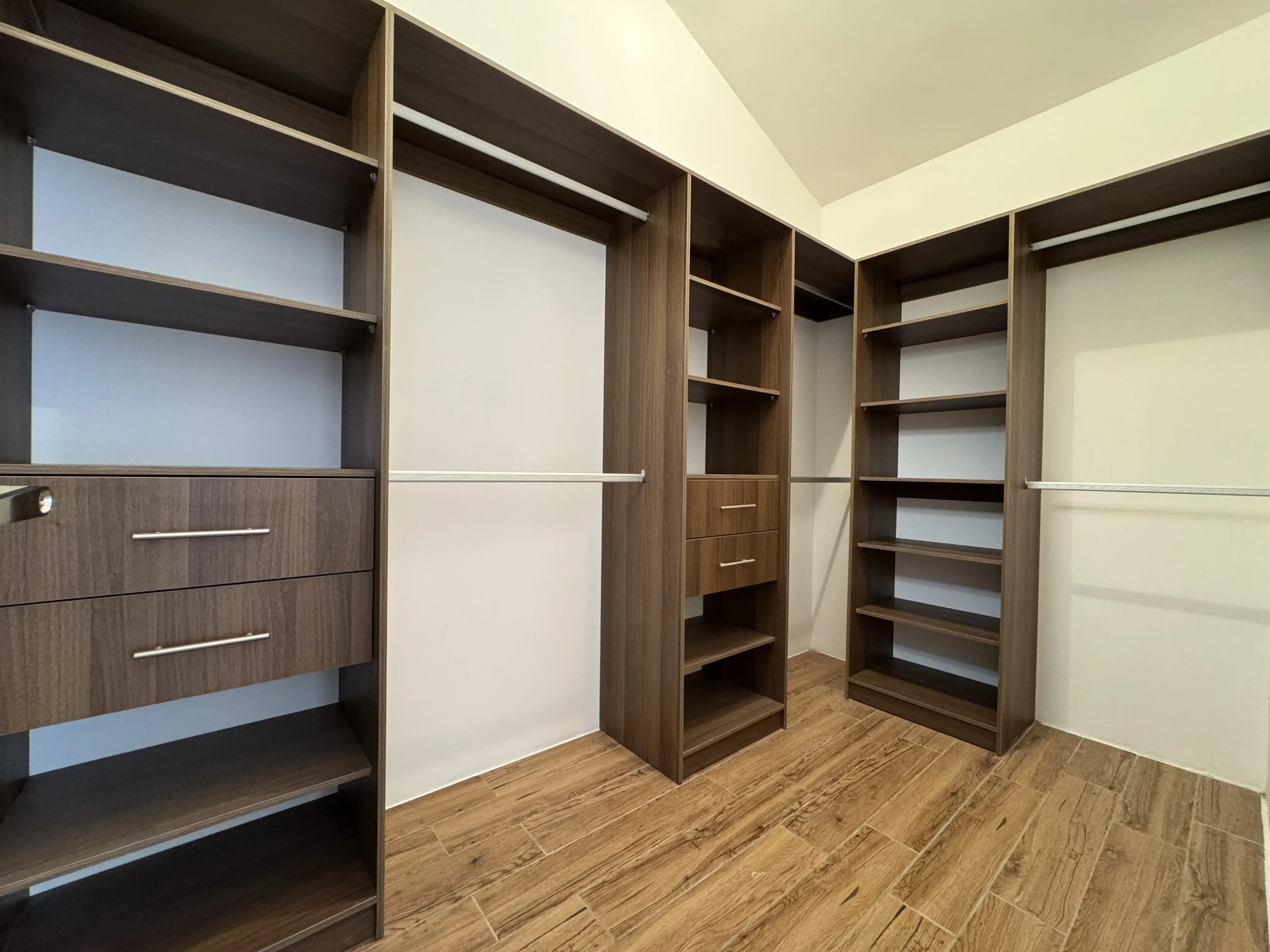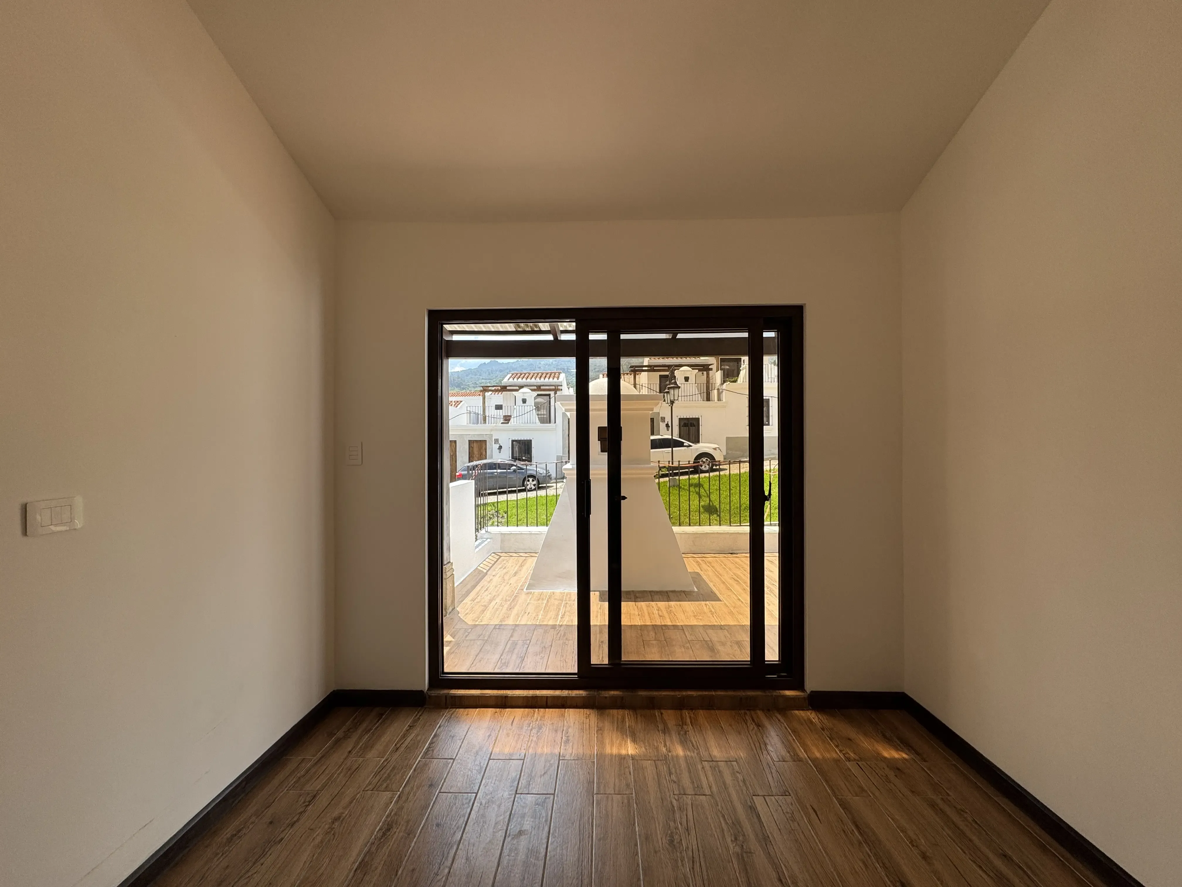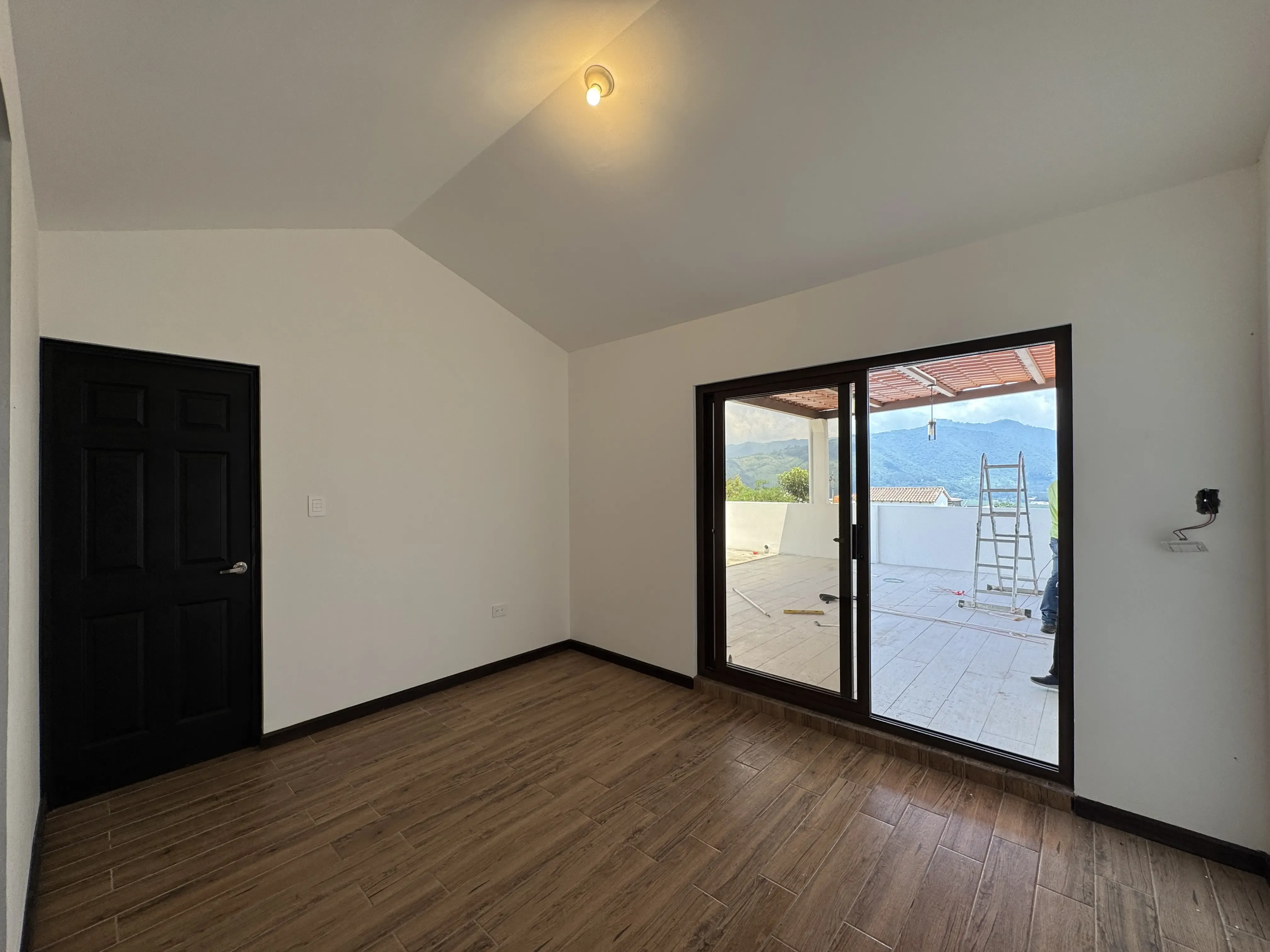 • Dormitorio principal con walk-in closet, baño y acceso a terraza con vistas espectaculares hacia los volcanes de Fuego, Agua y hacia el valle