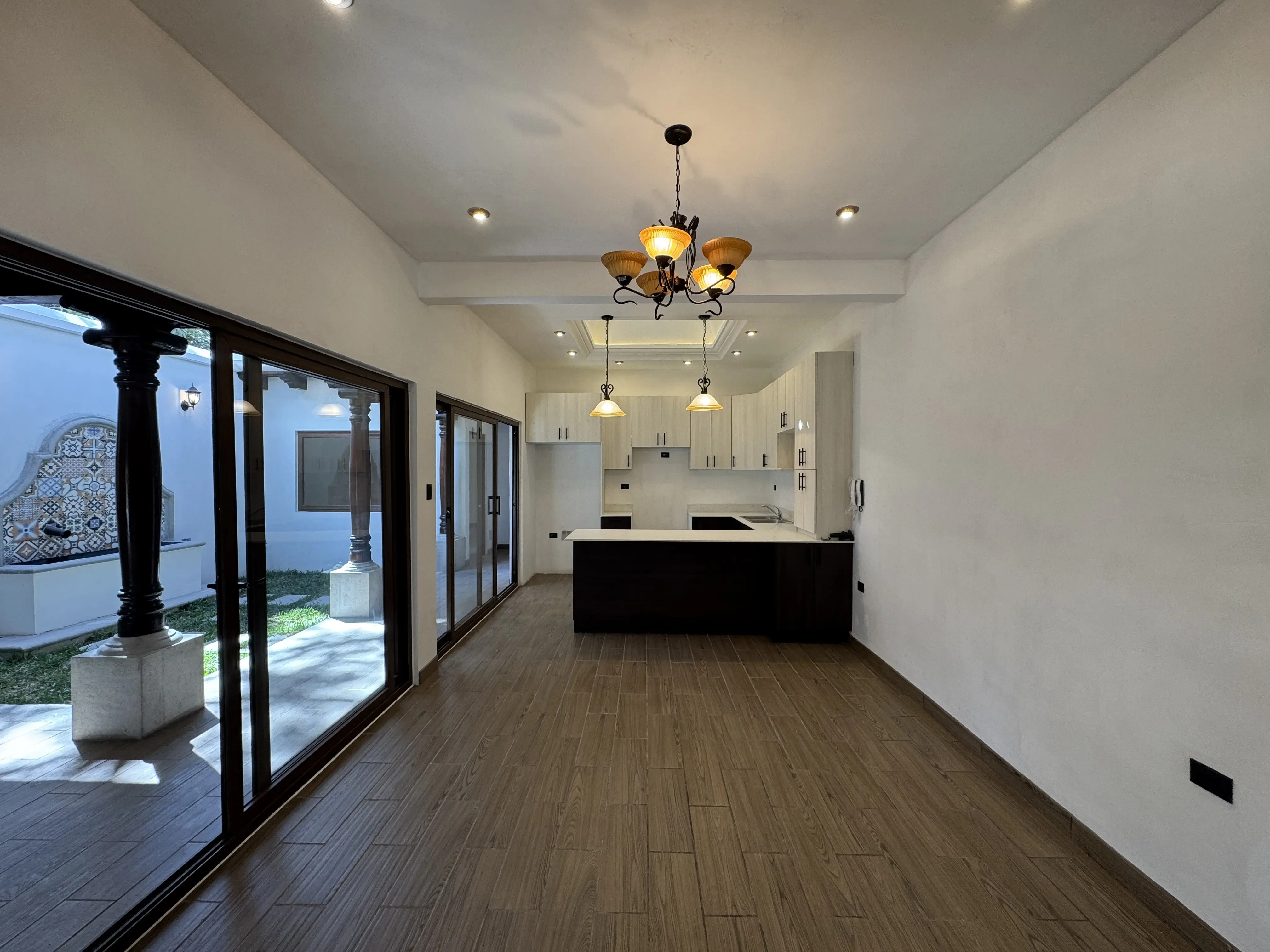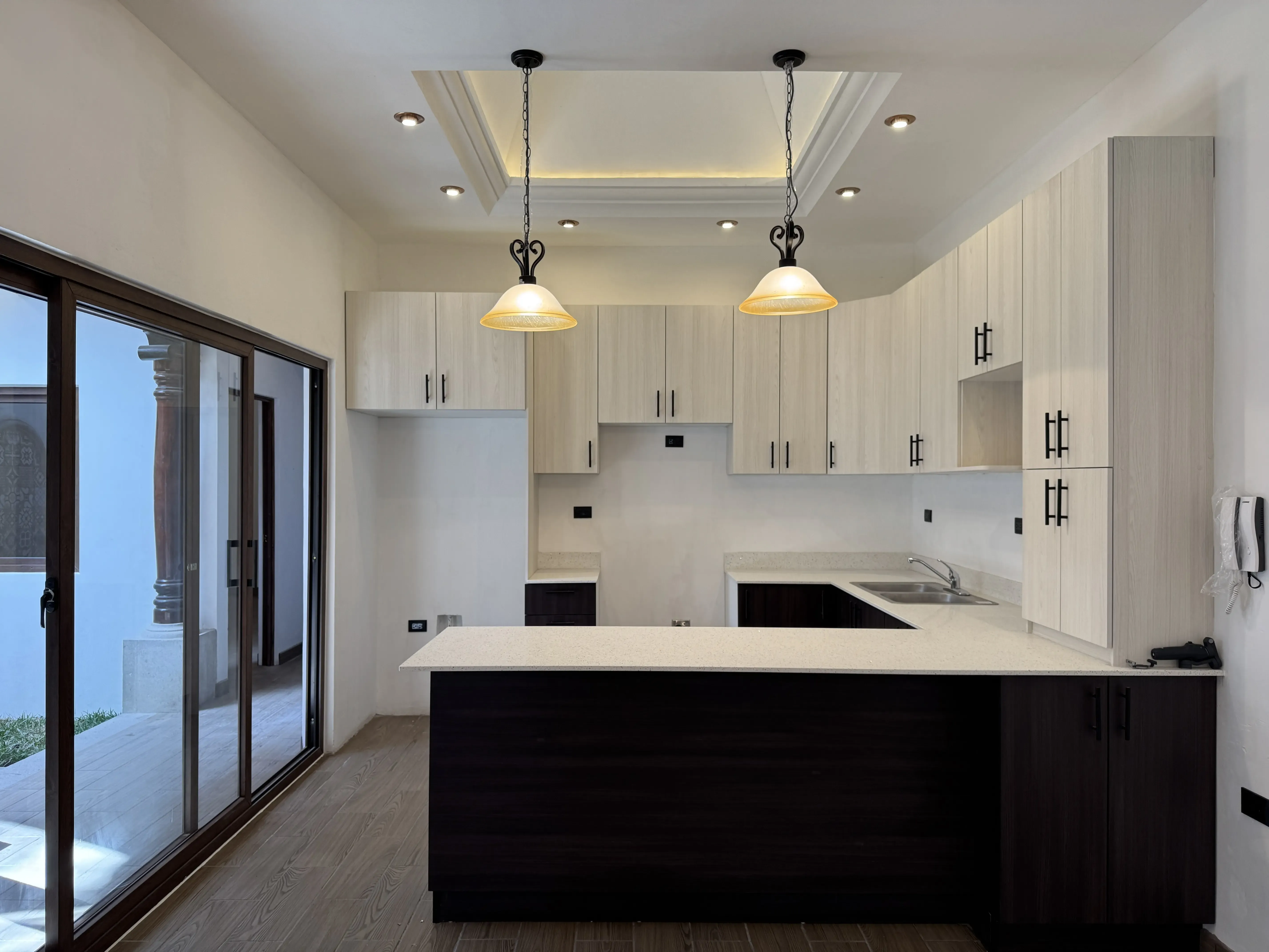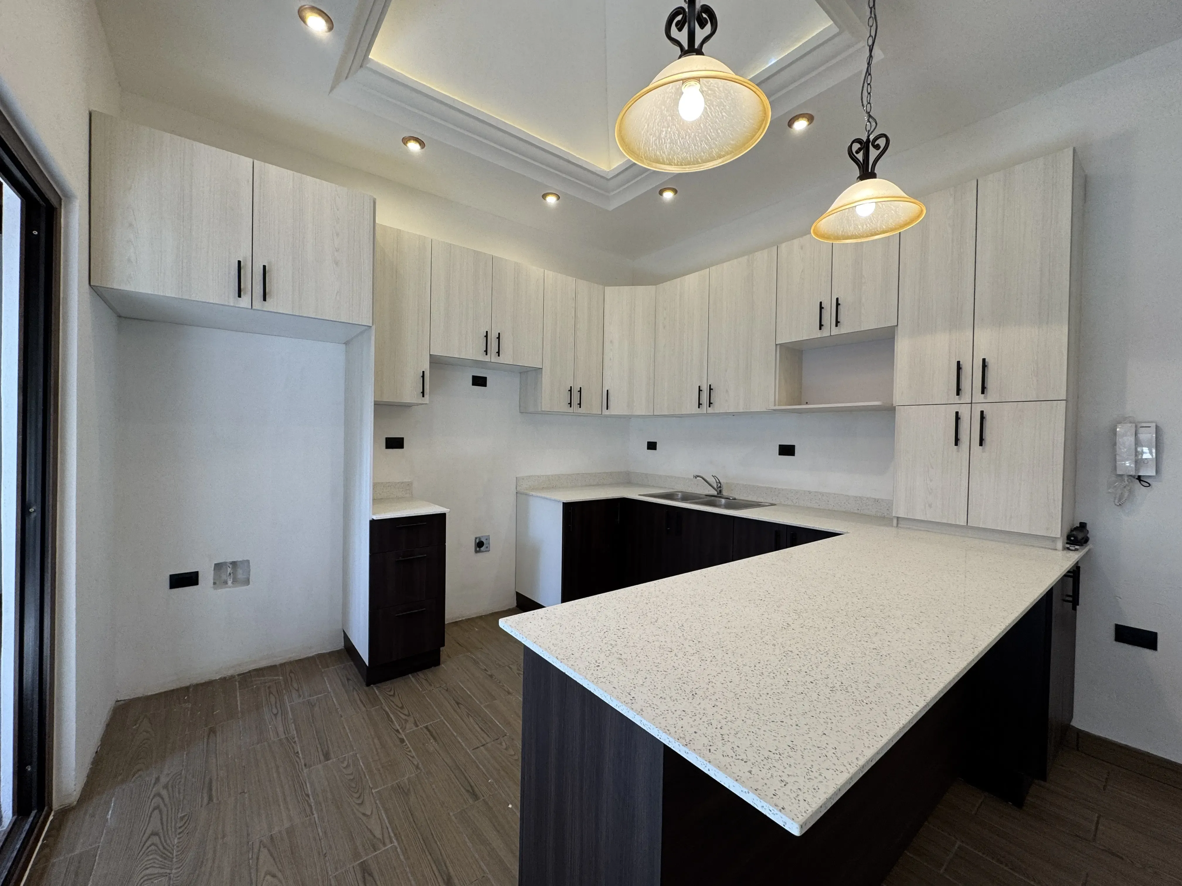 - Cocina con gabinetes, desayunador y cúpula