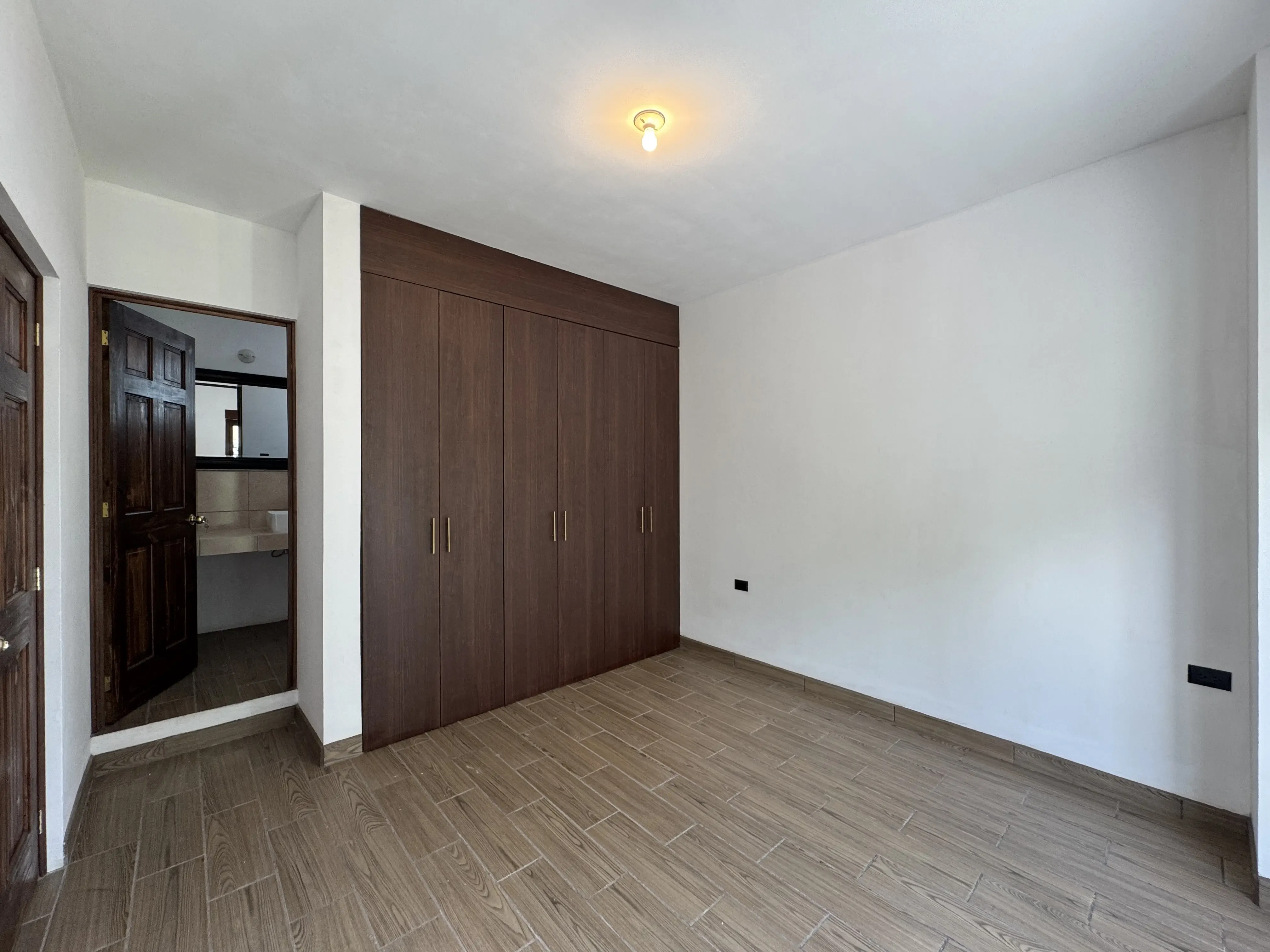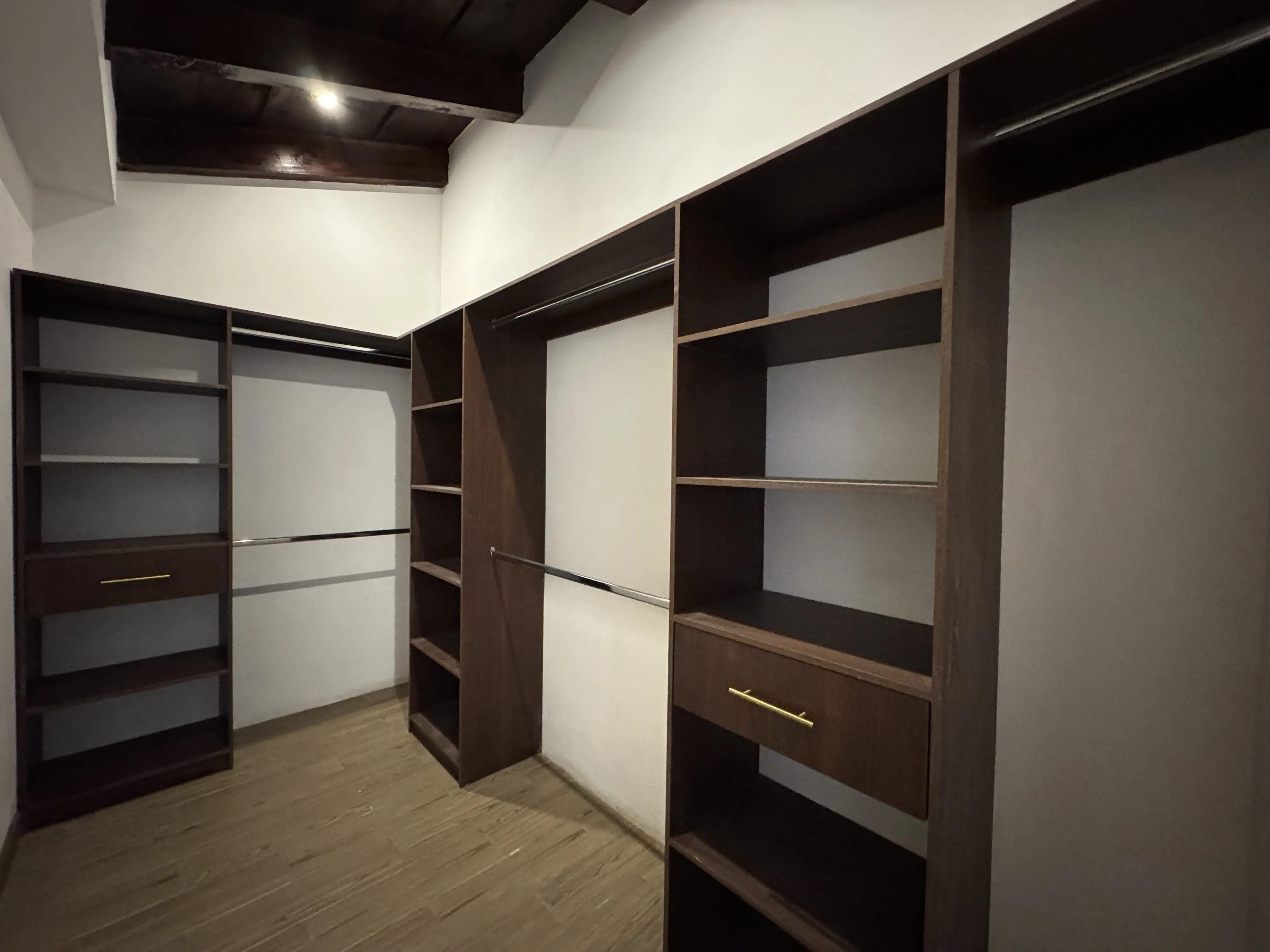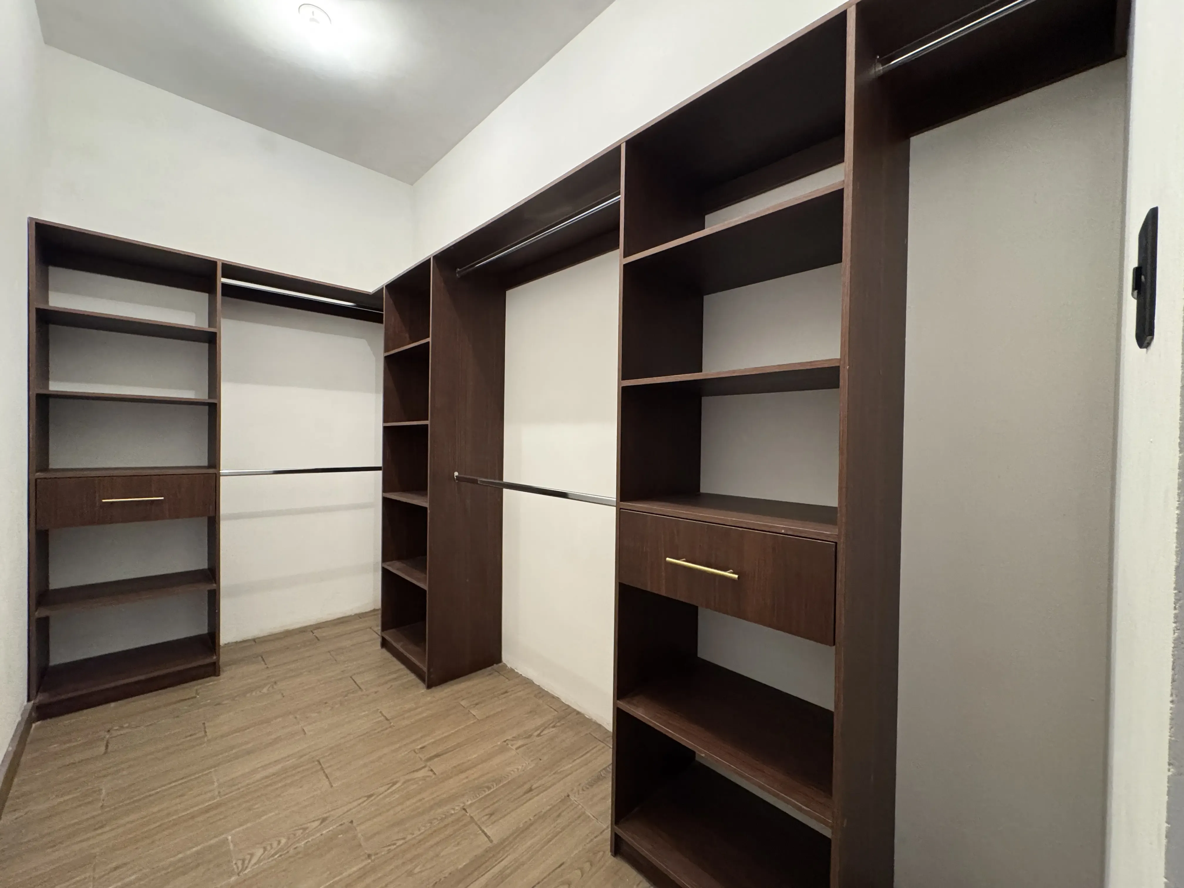 - Carpintería funcional: Closets integrados de pared completa, modernos con amplias estanterías.