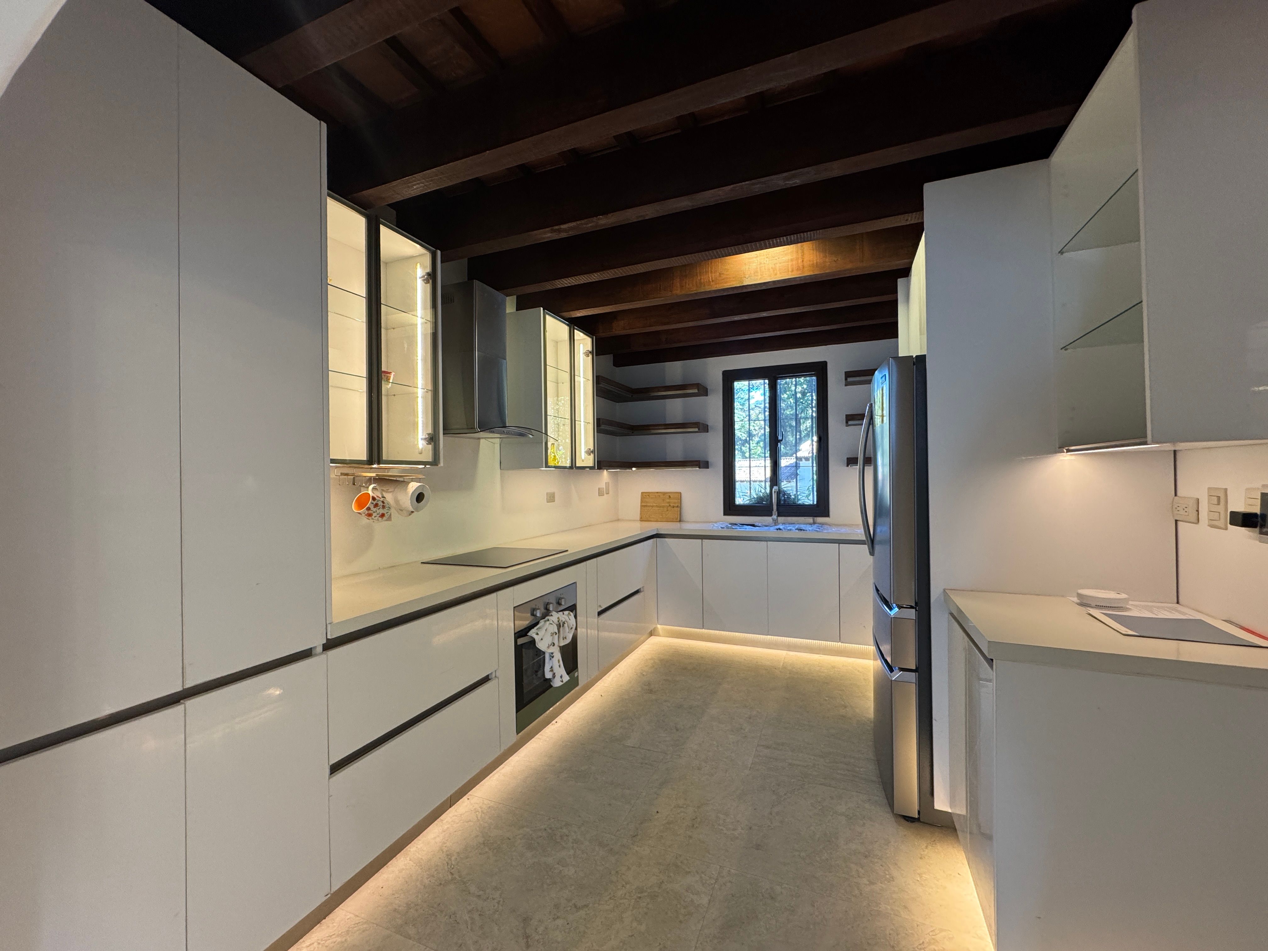 • Tecnología y seguridad: Portón eléctrico, internet satelital, luces LED con temporizador y un robusto sistema de seguridad que incluye sensores de humo/CO y lámparas de emergencia.
