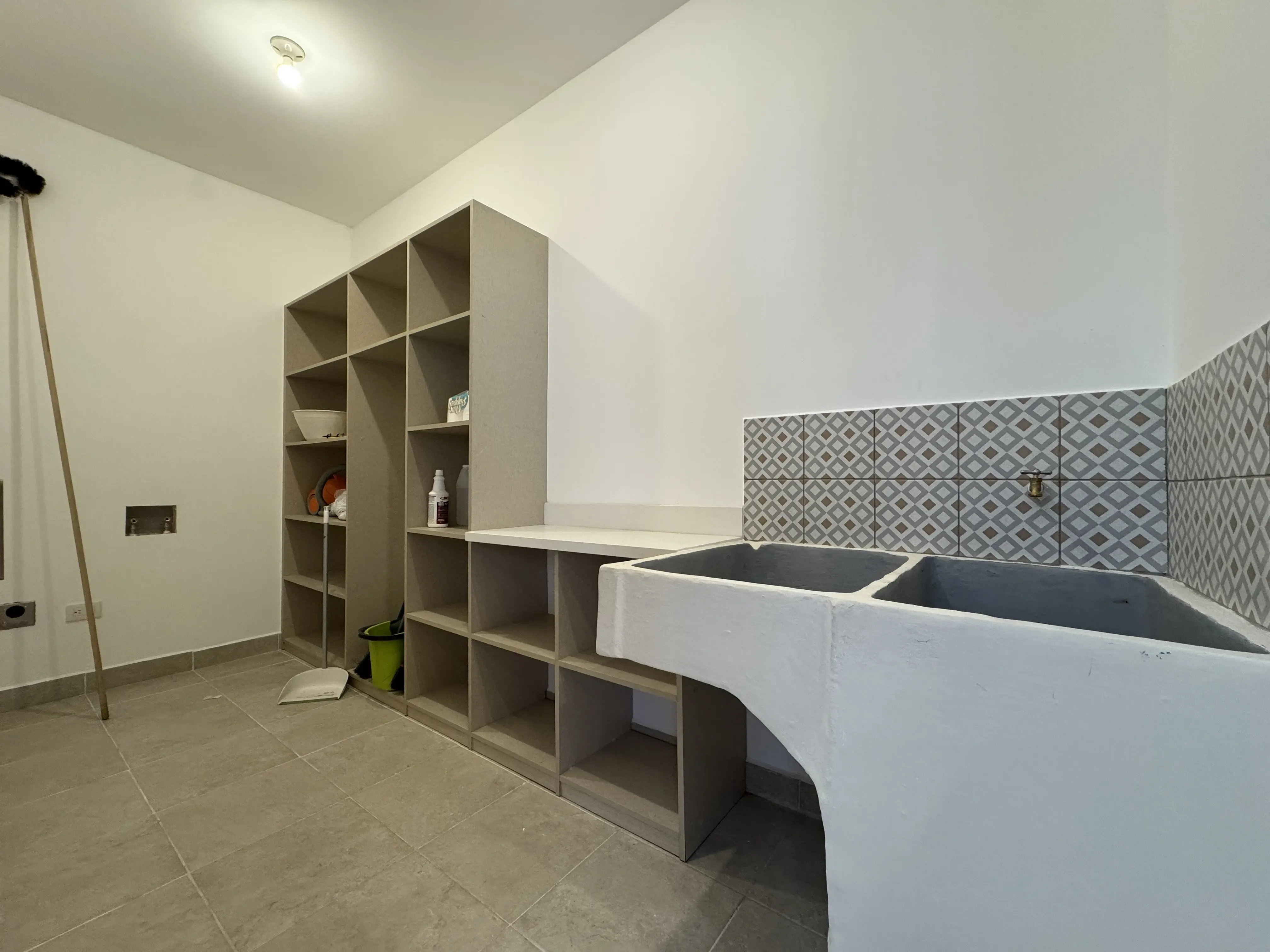 - Lavandería: Espacio funcional y ordenado con repisas de almacenamiento ya instaladas.