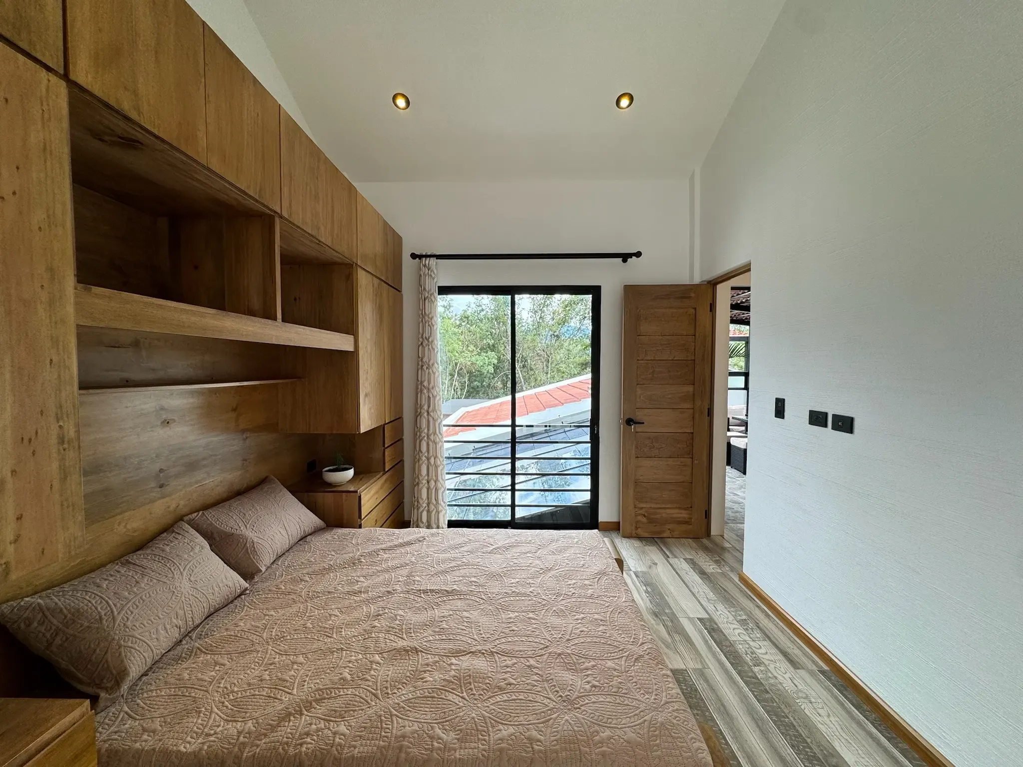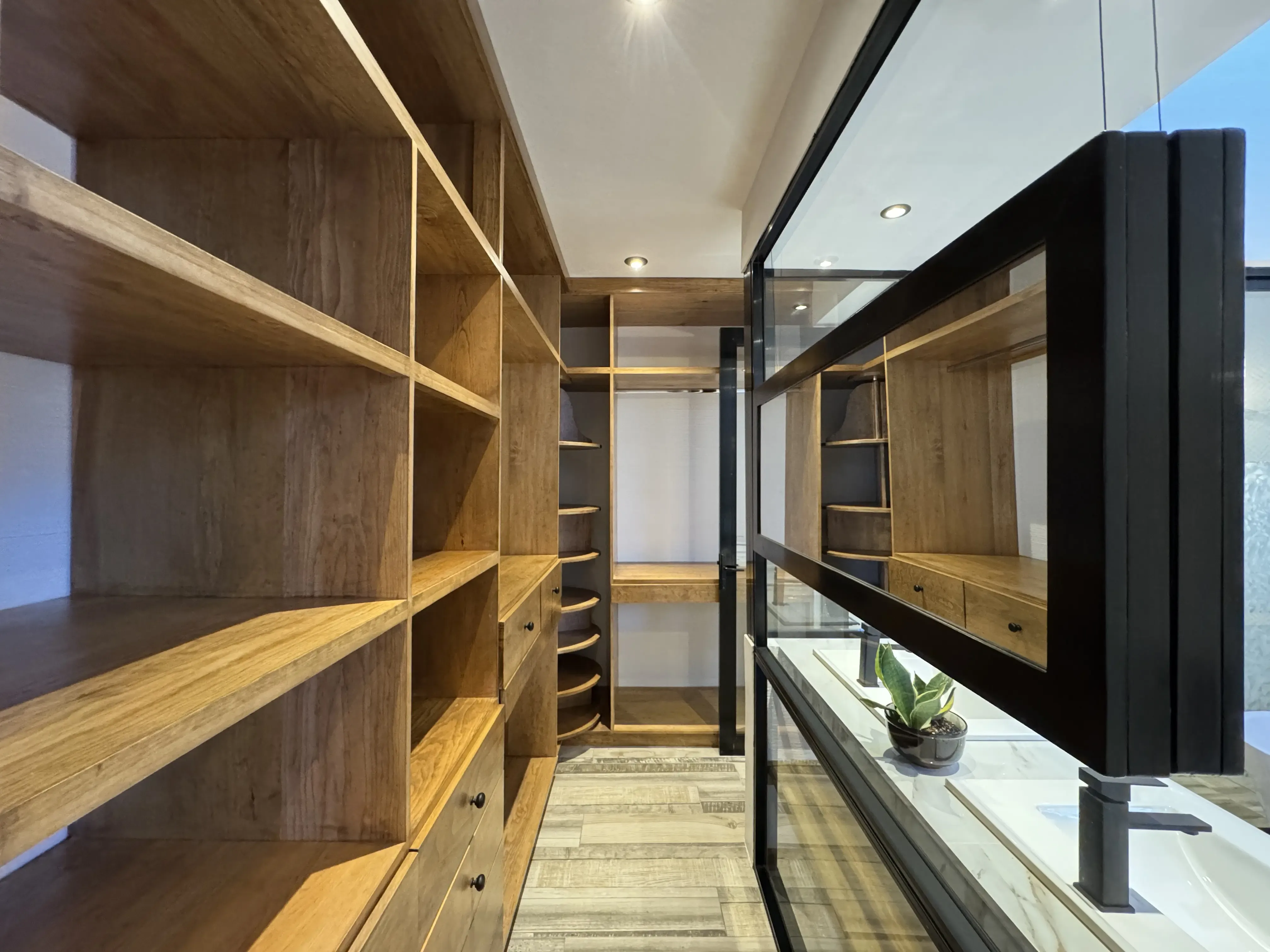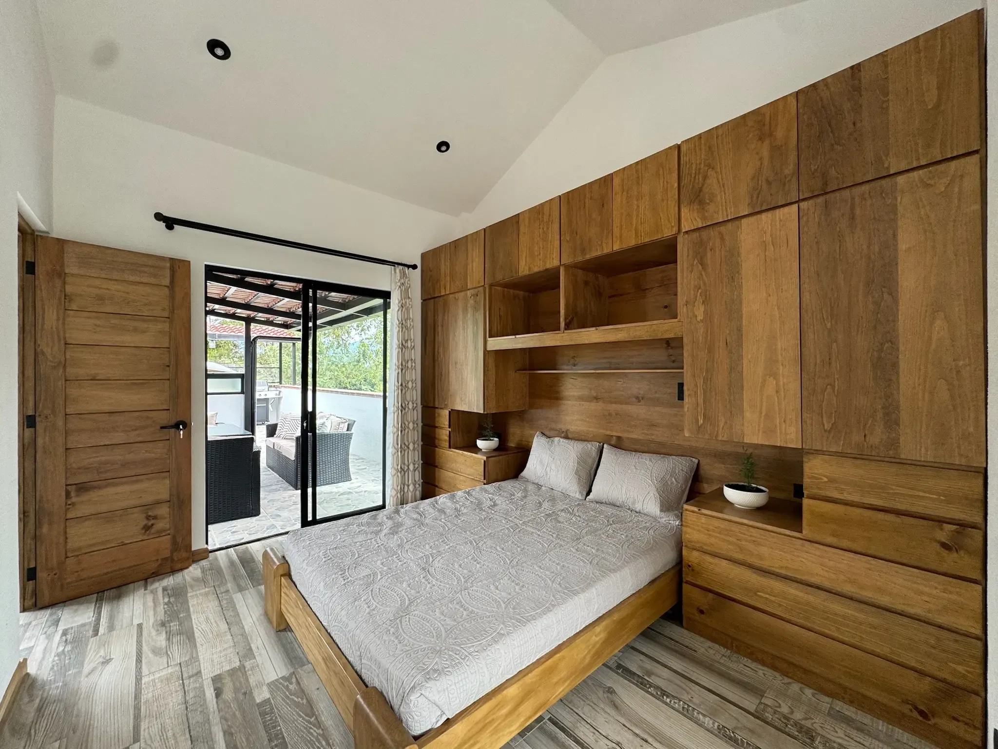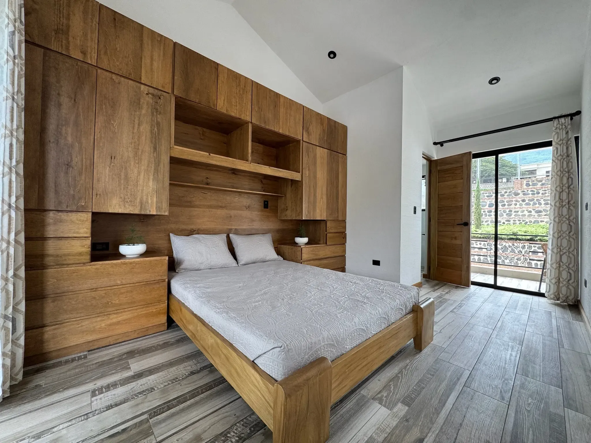 • Carpintería y acabados: Madera en tono maple en puertas y gabinetes, complementada con hierro forjado artesanal.