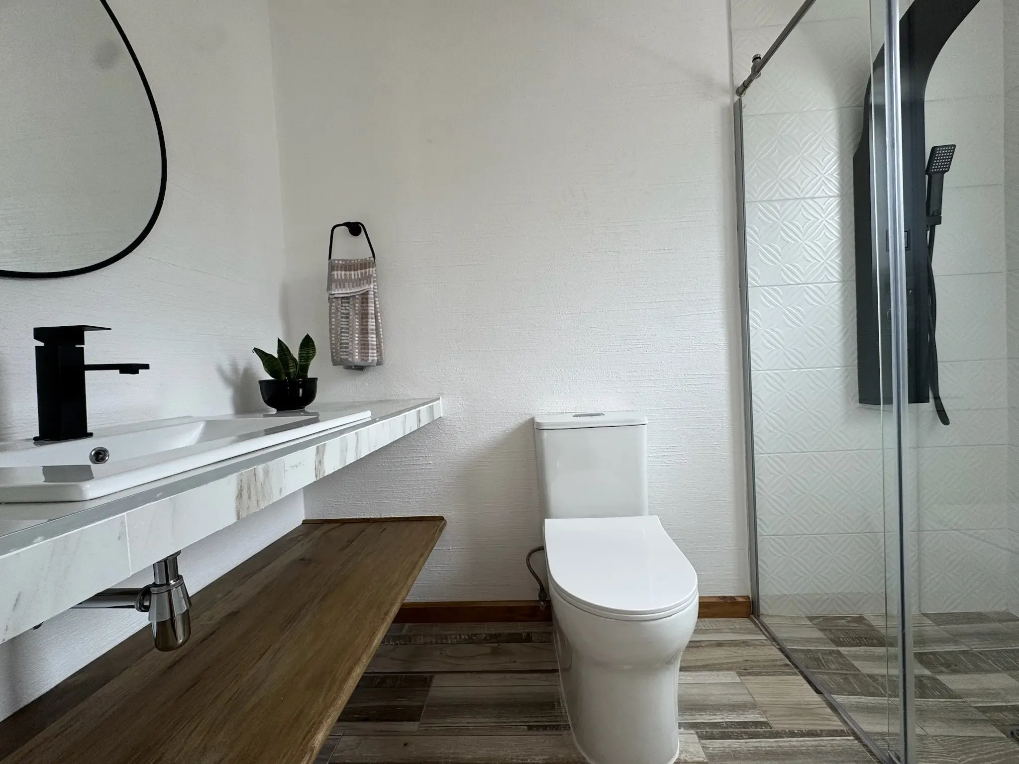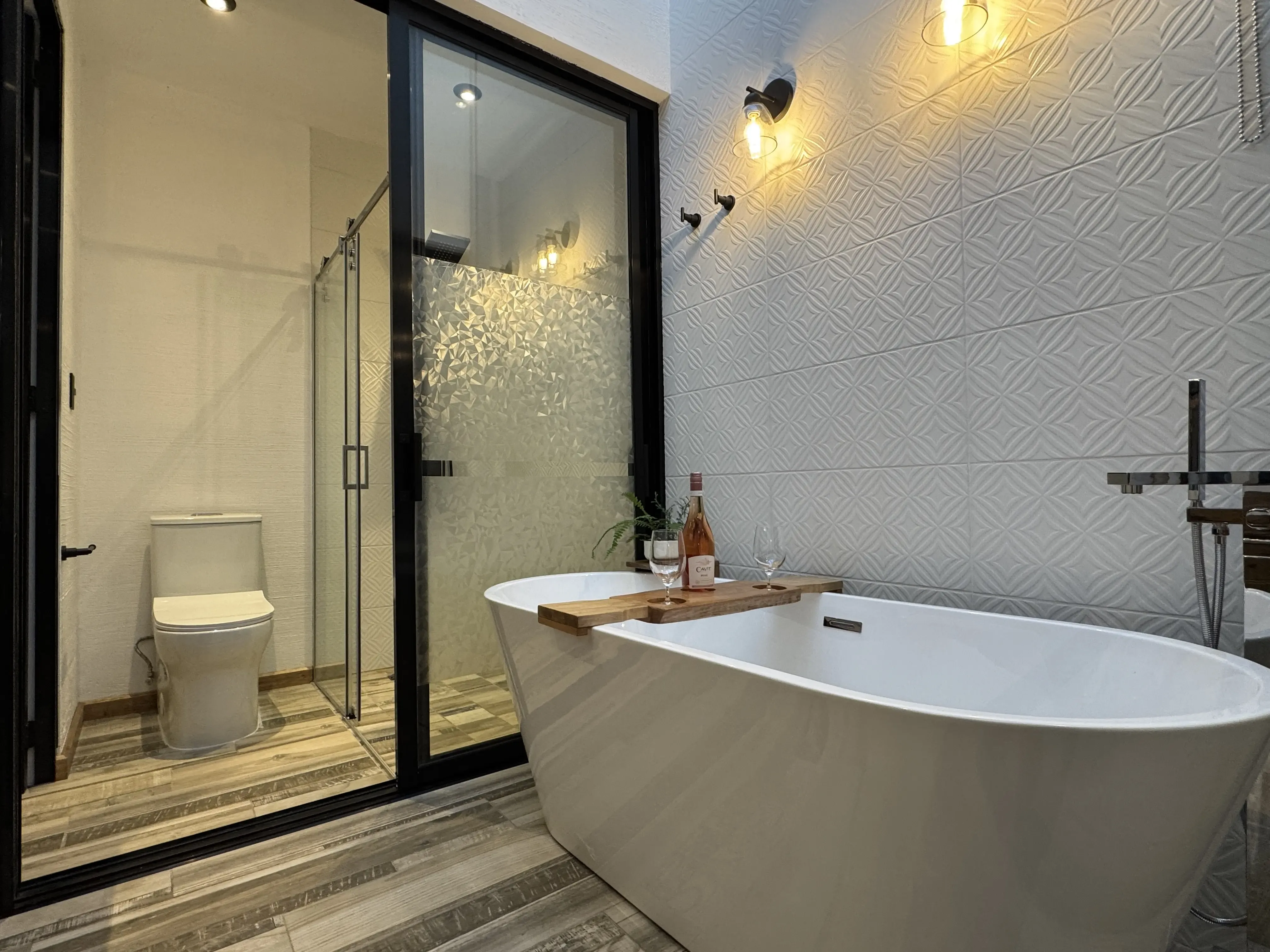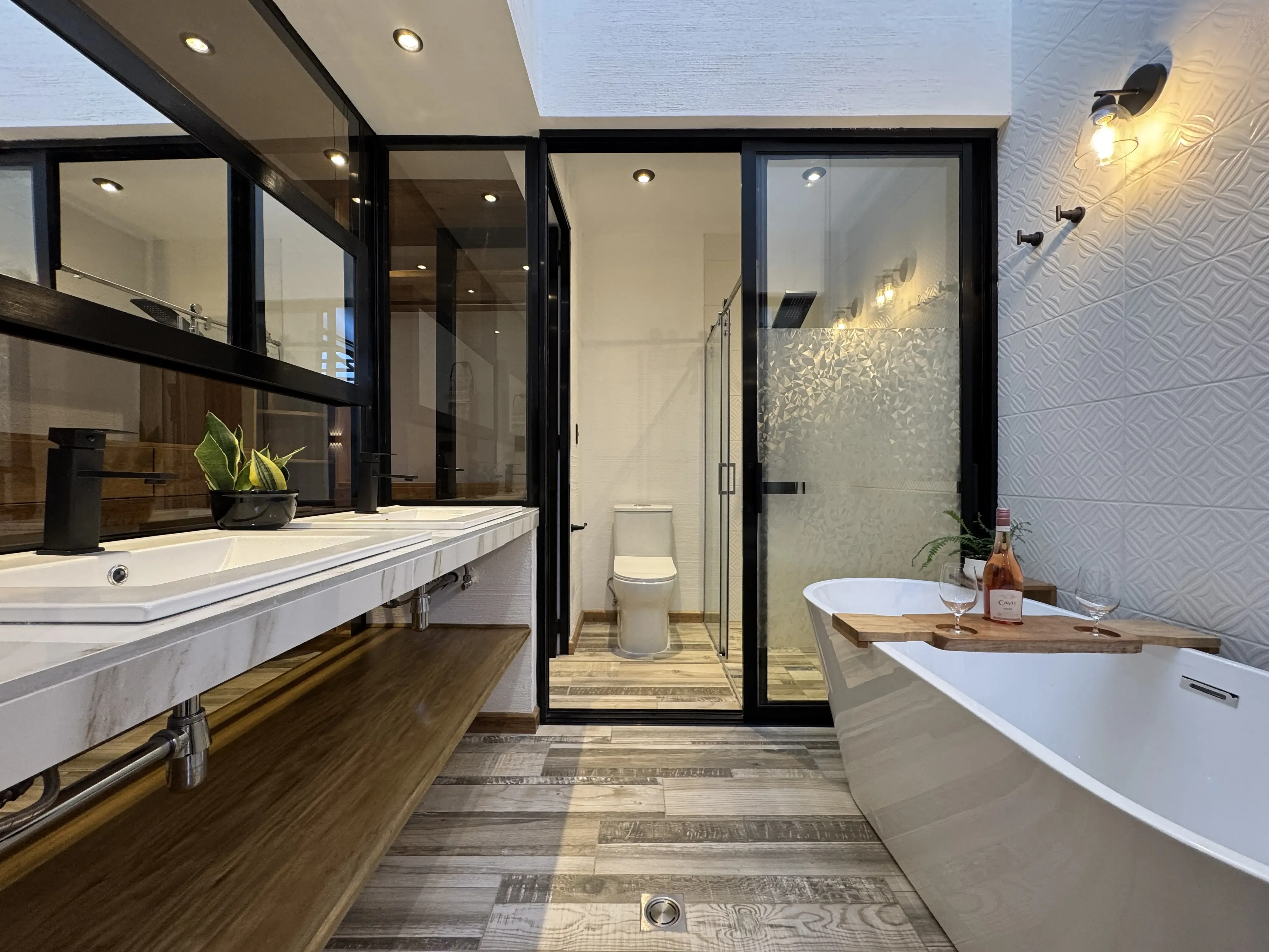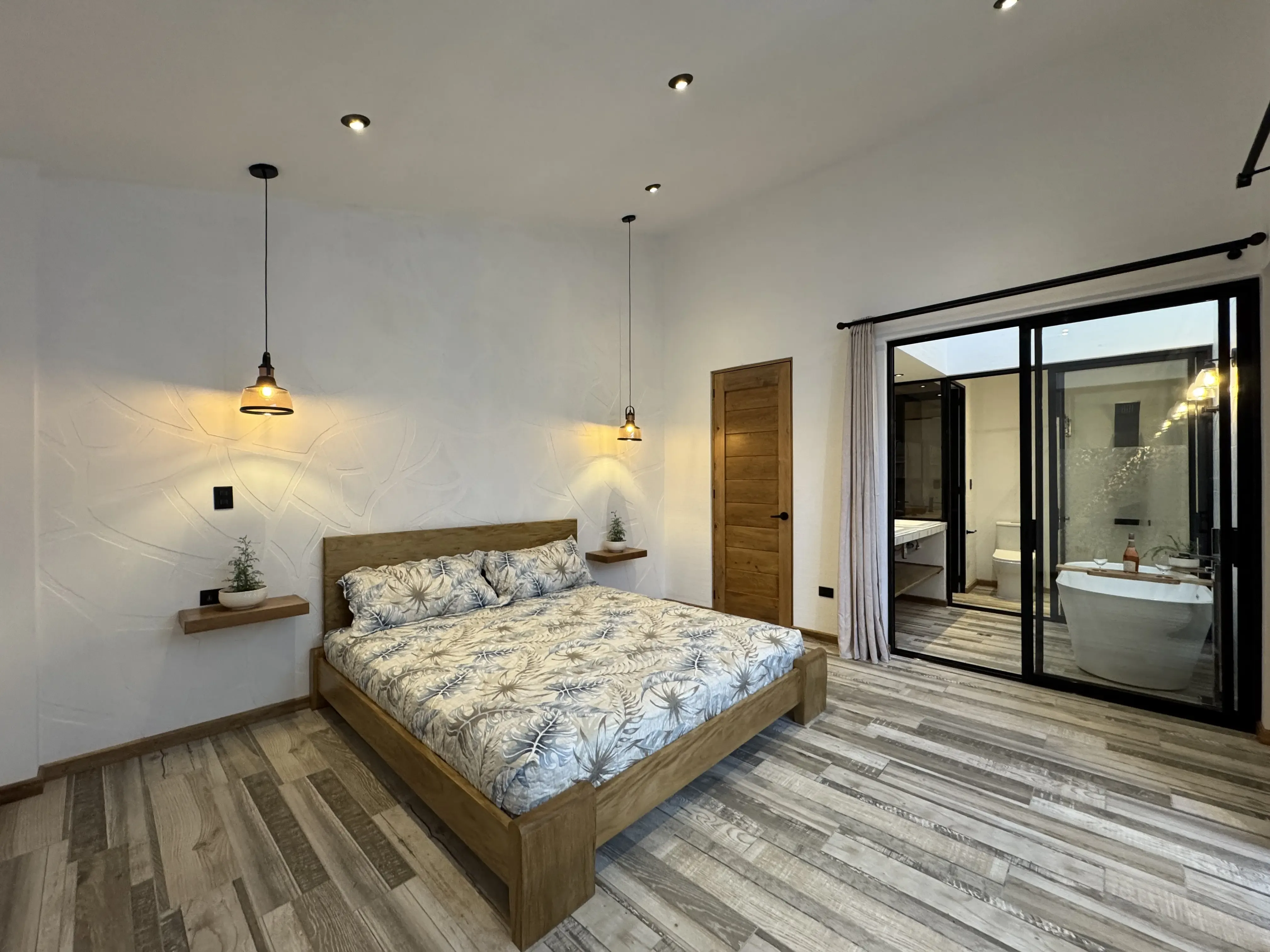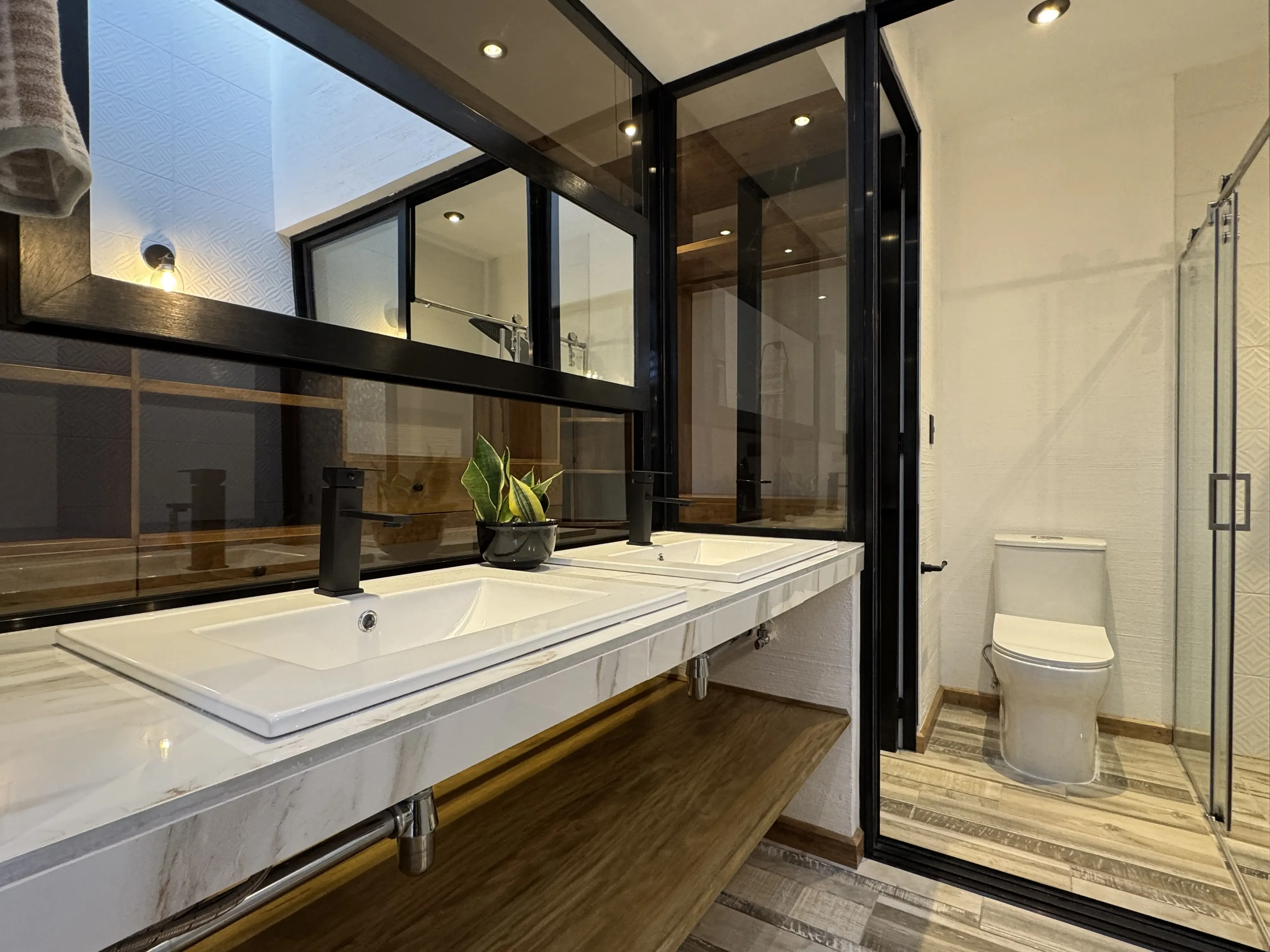 • Carpintería y acabados: Madera en tono maple en puertas y gabinetes, complementada con hierro forjado artesanal.