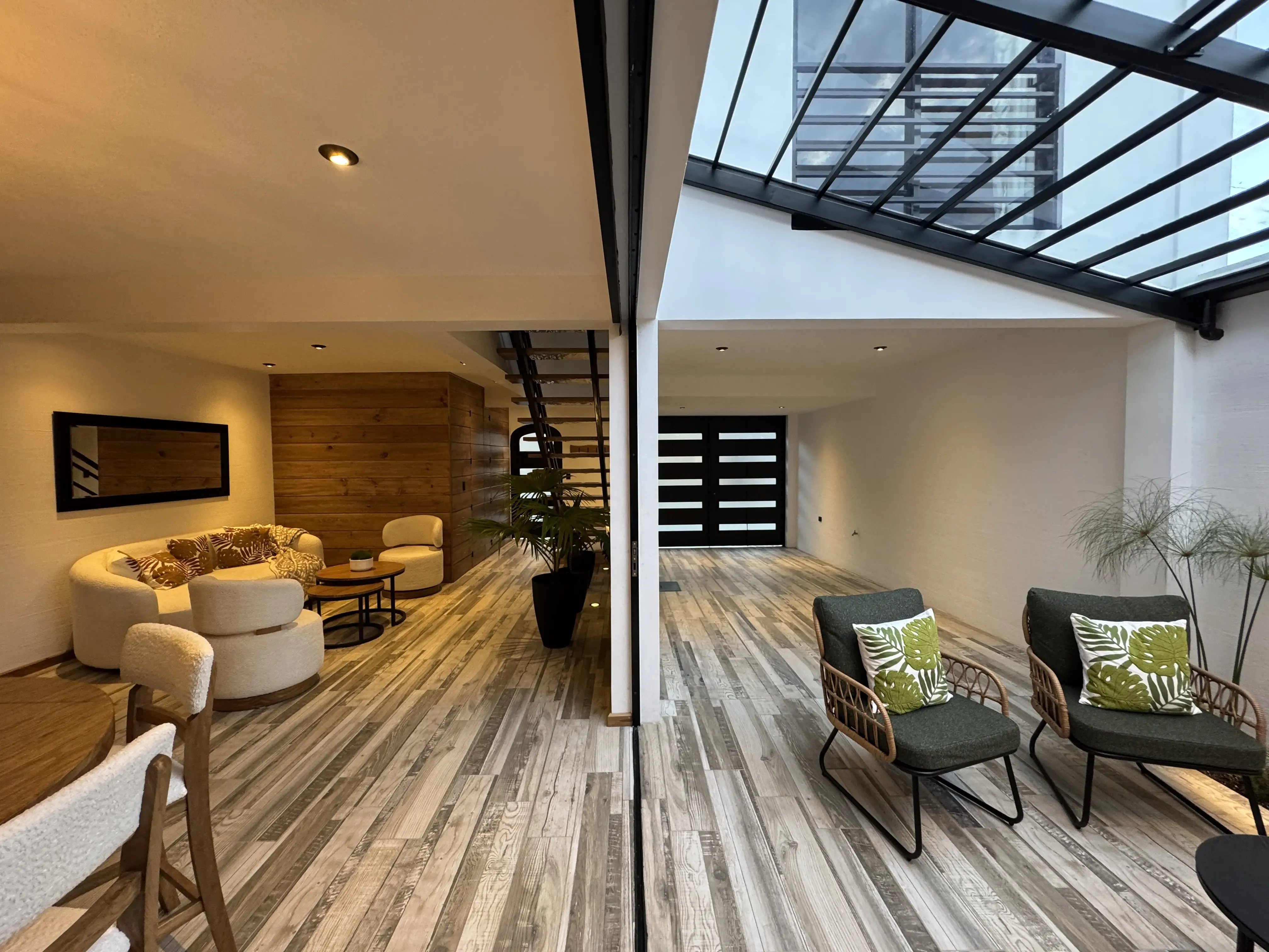 • Puertas escondidas: La casa tiene el detalle de tener puertas escondidas, lo que nos da un diseño de interiores limpio y sumamente cómodo.